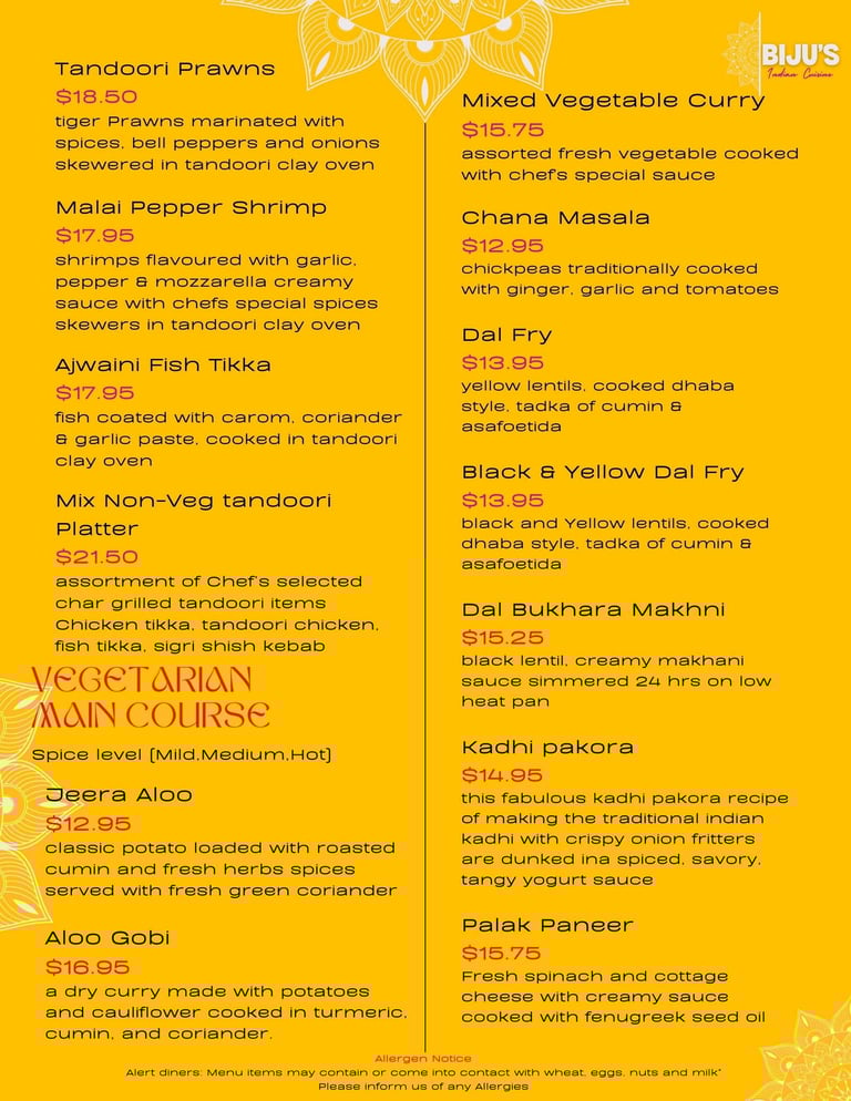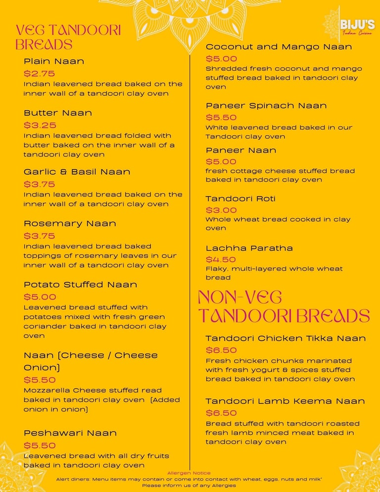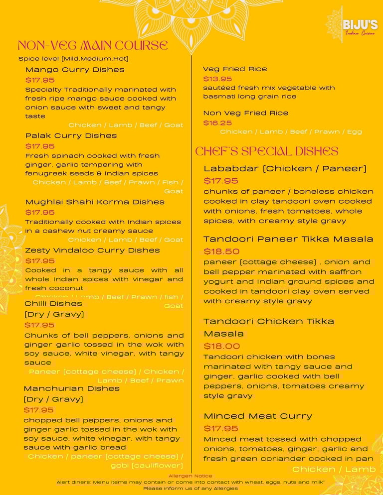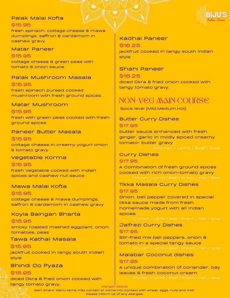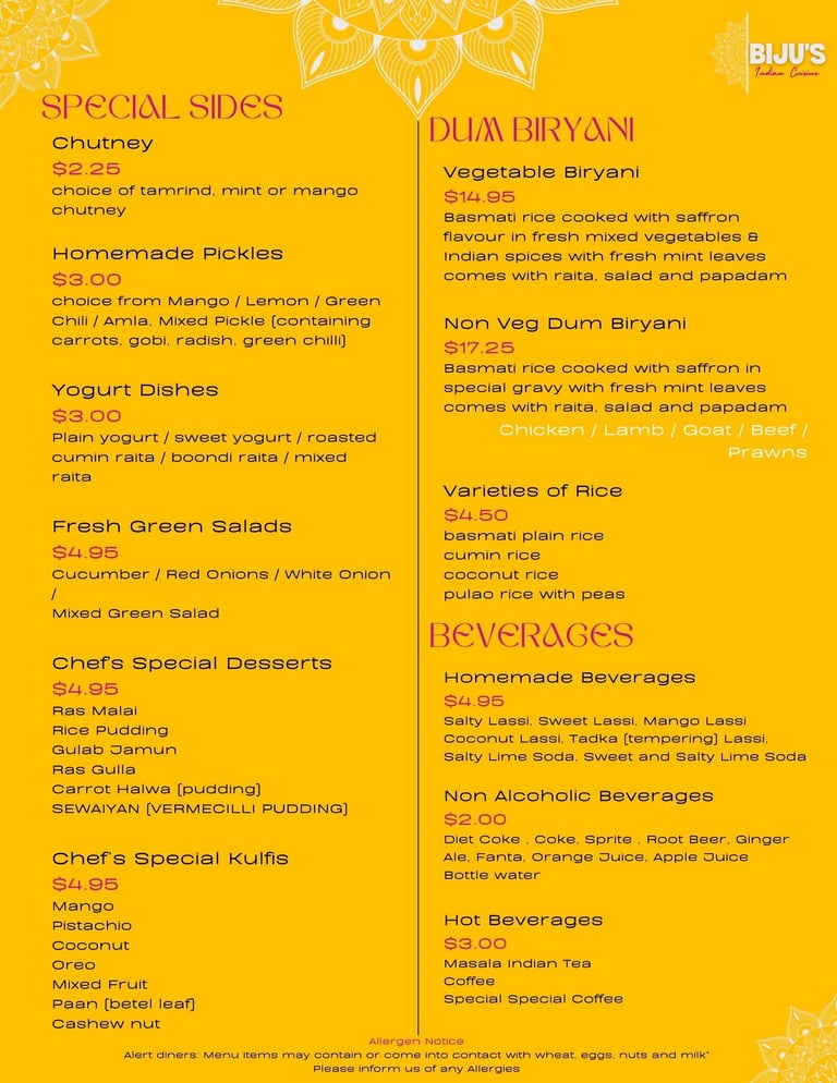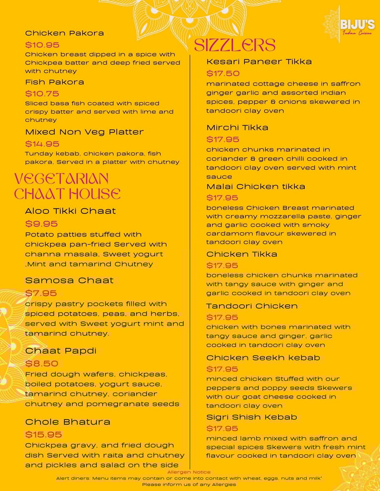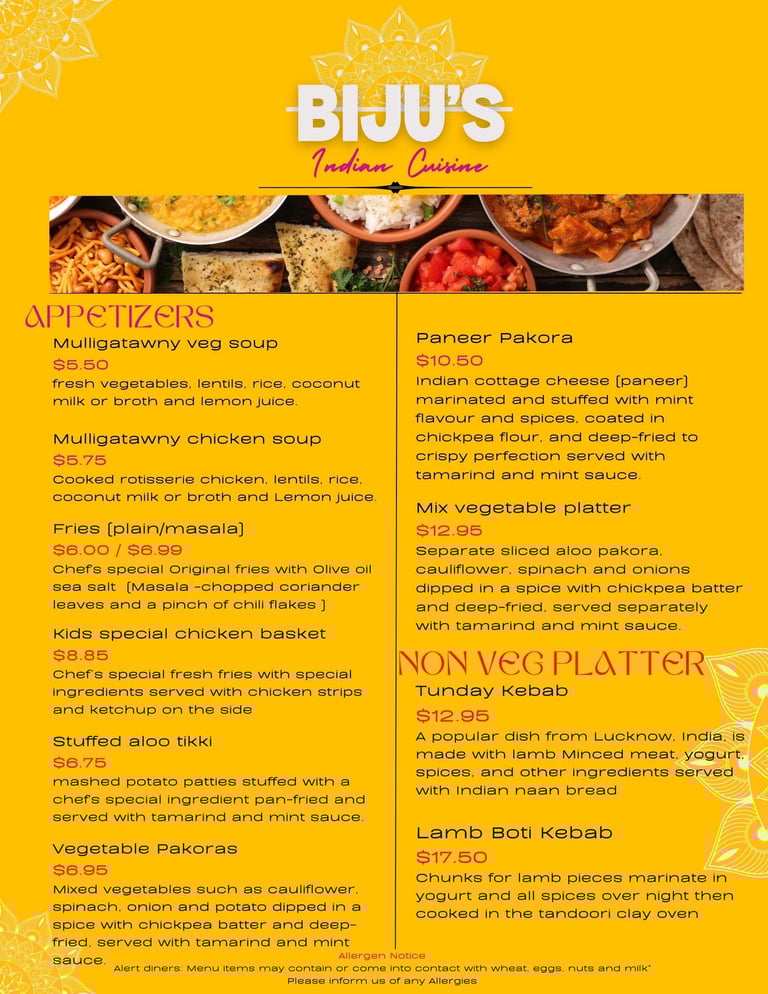 Exciting news! We're thrilled to share the first look at our flavorful menu at Biju's Indian Cuisine. 🍽️🌶️